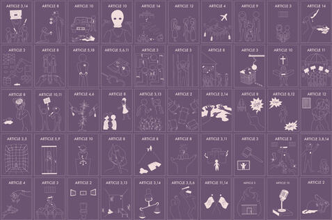 2. The game master will then show others the front side of the card, which contains a picture and an article of the European Convention on Human Rights. These articles guide the players. Every player is handed a list of human rights that are violated in the game, for guidance. The pictures contain details of the situation.